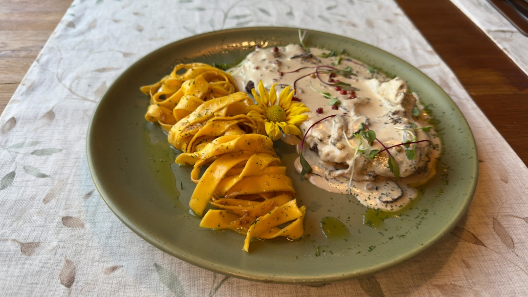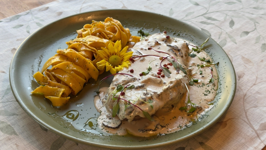 MIGNON GRELHADO NO AZEITE E ERVAS, RISOTO DE COGUMELOS FRESCOS FINALIZADO COM NATA E PARMESÃO
